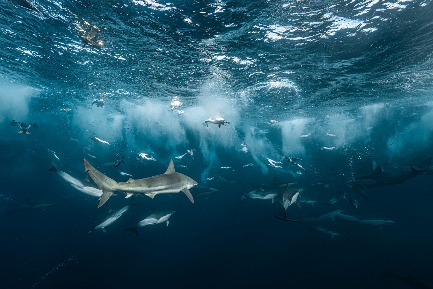 Every winter billions of sardines migrate north along South Africa’s Wild Coast. This natural event triggers one of the most spectacular wildlife phenomena on the planet. Dolphins, sharks, whales and seabirds work together to herd the sardines into dense bait balls. Creating explosive feeding frenzies near the surface.